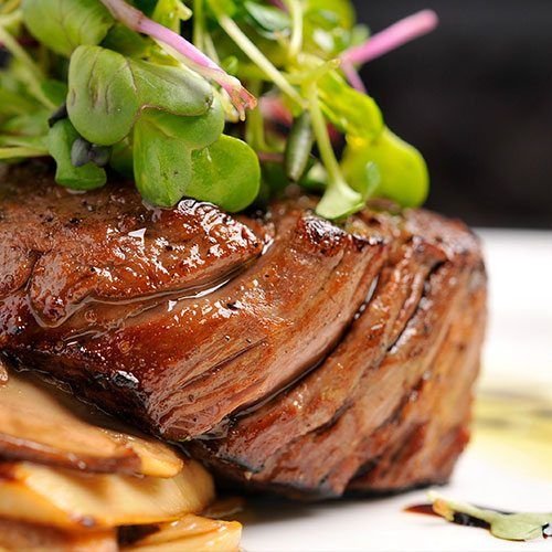 Rib eye cream sauce mâche mix